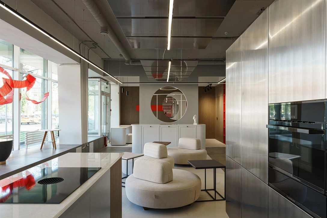 В новом флагманском шоуруме «Мария» площадью 434 кв. м представлены не только кухни — основное направление бренда — но также шкафы, гардеробные системы, мебель для ванных комнат и прачечных, а также мягкая мебель для гостиных и спален. Так что посетители смогут подобрать здесь мебель, которая будет прекрасно комбинироваться между собой, для любых помещений дома. И не только мебель — а еще и идеи оформления своего дома в соответствии с самыми последними модными трендами в интерьерном дизайне.