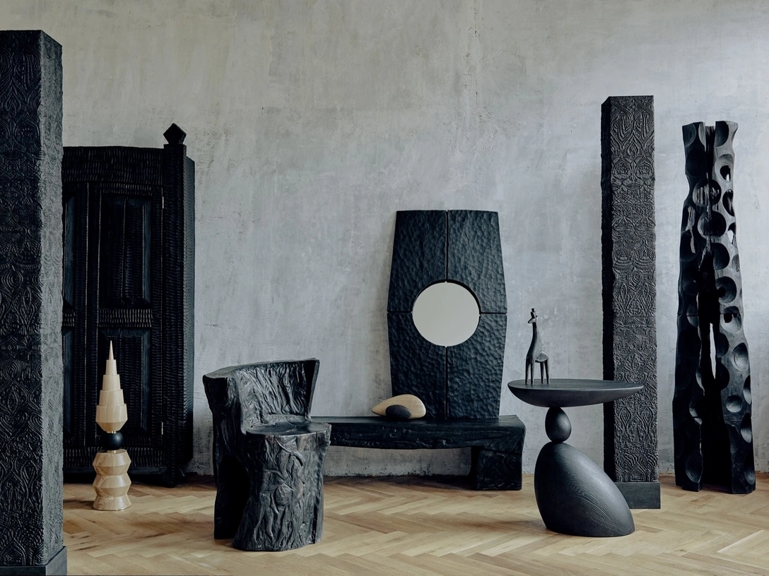 Мы широко используем обжиг дерева. Работаем пескоструем, под большим давлением воздухом с песком раскрываем поры дерева — получаются невероятные вещи. Мы не занимаемся традиционной резьбой по дереву. Орнаменты мы сжигаем, чтобы получился интересный скрытый рисунок: где-то он проглядывает, а где-то теряется. Традиционные вещи можно сделать по-новому.