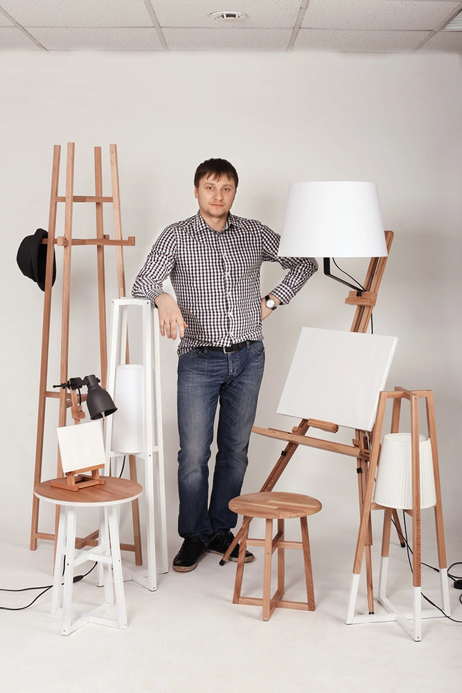 Конечно, дерево. Легко достать, обработать. В планах — работа со стеклом.