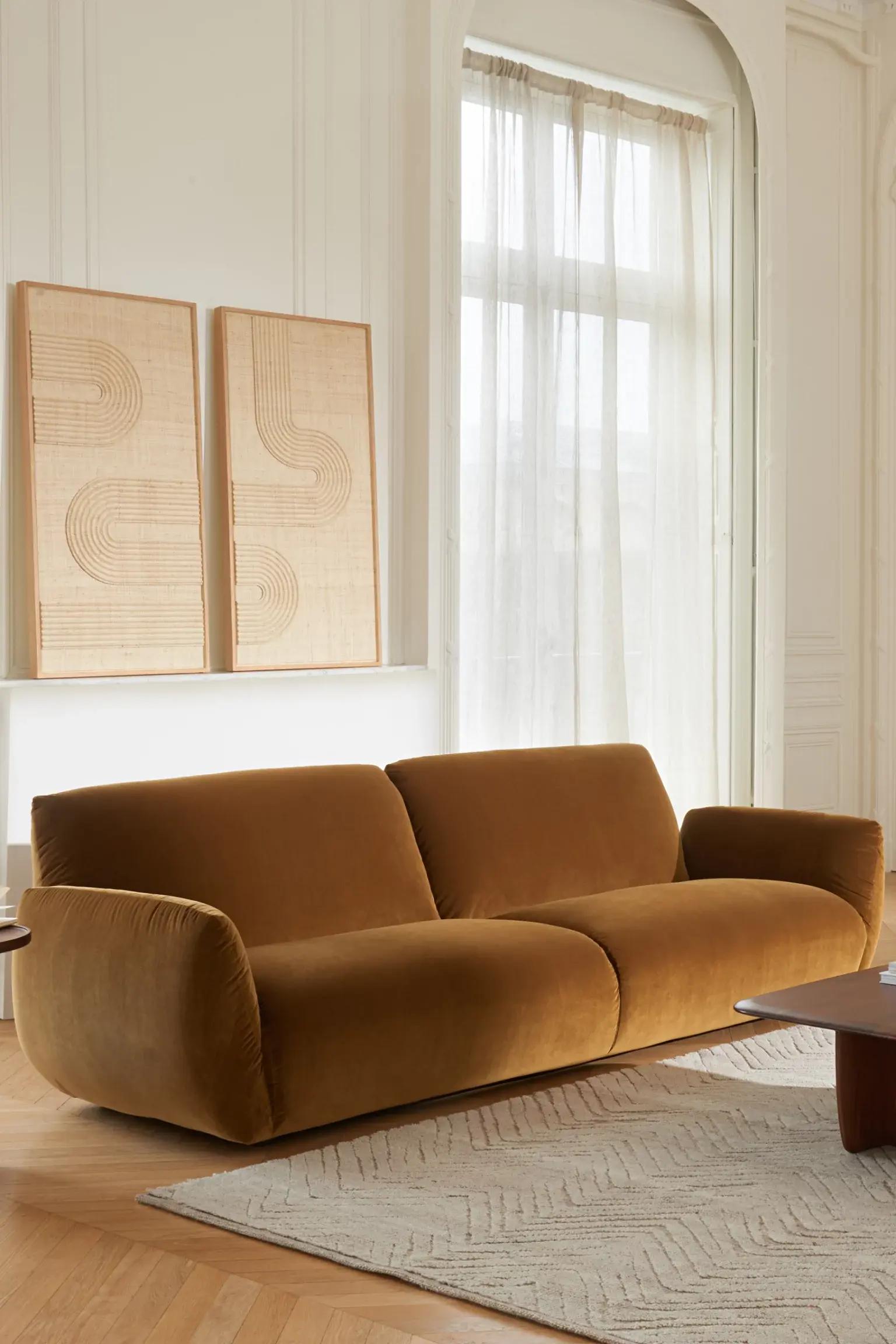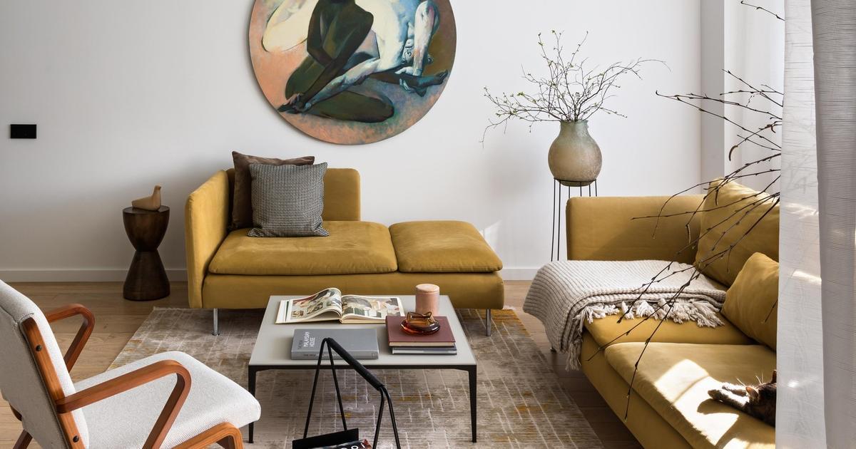 Мы привыкли выбирать «универсальные» диваны серо-бежевой гаммы, думая, что они никогда не устареют. Но что-то среднее между монотонным и ярким интерьером все-таки есть, и это природная землистая палитра, которая никогда не надоест. Посмотрите, как горчичный диван вписывается в разные интерьеры — он ненавязчив, но в то же время по-своему необычен.