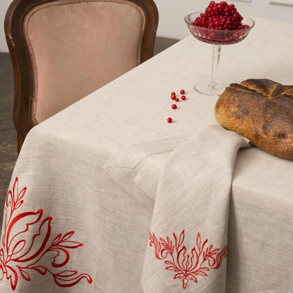 Коллекция «Усадьба» переосмысливает эстетические коды, характерные для русской интеллигенции дореволюционного периода, и переносит их в наше время. В столовом текстиле из льна с вышивкой дизайнеры бренда «Ленский» сохранили традиции и отразили культурную идентичность.