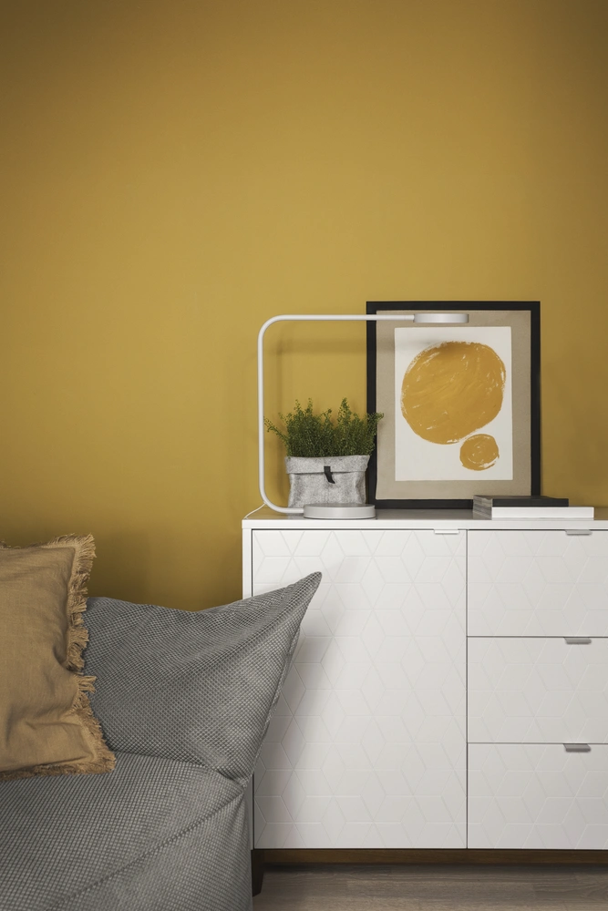 Эти цвета лучше использовать не в равных долях, а с четким распределением доминирующего и второстепенных оттенков: например, горчичный — как базовый фон, бирюзовый — как акцент в текстиле или декоре.
