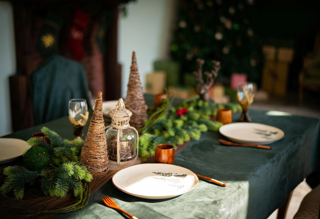 Если любите комнатные растения, используйте их для декора. Соберите коллекцию своих зеленых любимцев в красивых кашпо и поставьте в центре стола в окружении свечей и елочных шаров. Даже простые глиняные горшки могут смотреться стильно. Избегайте кактусов (чтобы не уколоться) и цветов с сильным ароматом, чтобы он не перебивал запах блюд.