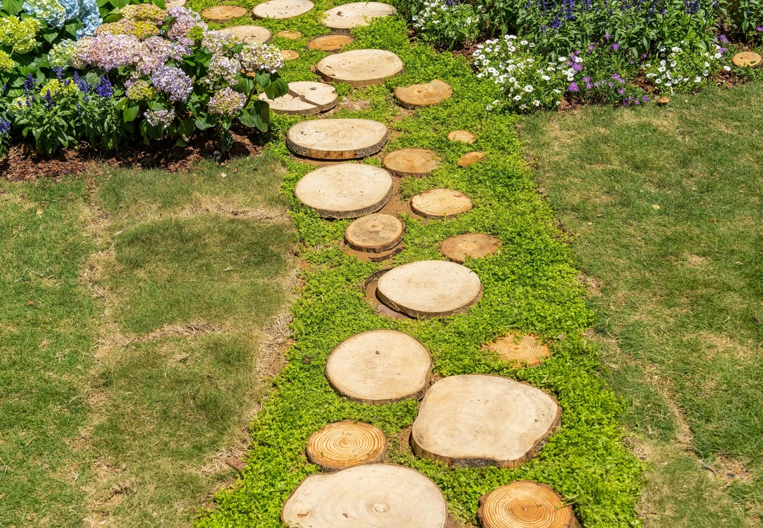 Выбор материалов — ключевой момент. Самые распространенные элементы — окатанная галька разных фракций, от мелкой (5–20 мм) до крупной (40–70 мм), которая приятно массирует стопу. Также можно использовать деревянные элементы — настилы из дощечек, деревянную брусчатку, срезы бруса. Они должны быть достаточно фактурными, чтобы ощущаться под ногами, но при этом безопасными — без заноз и острых краев. Дерево необходимо регулярно проверять и при необходимости обрабатывать.