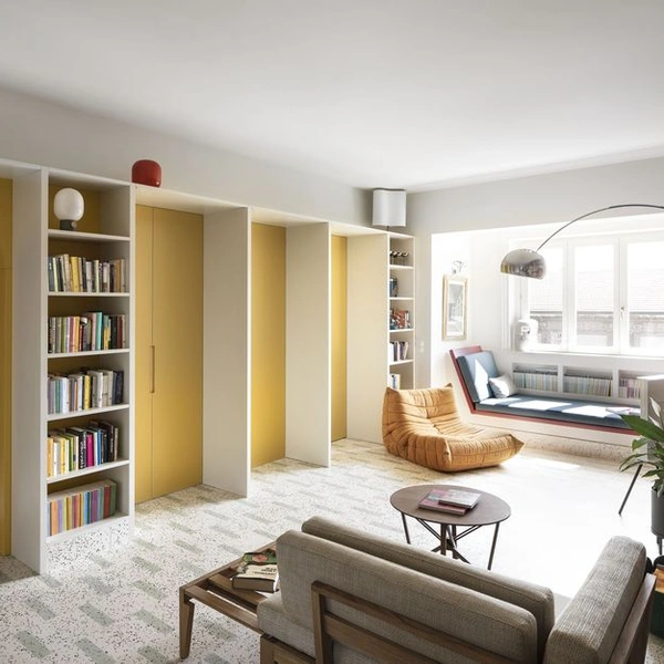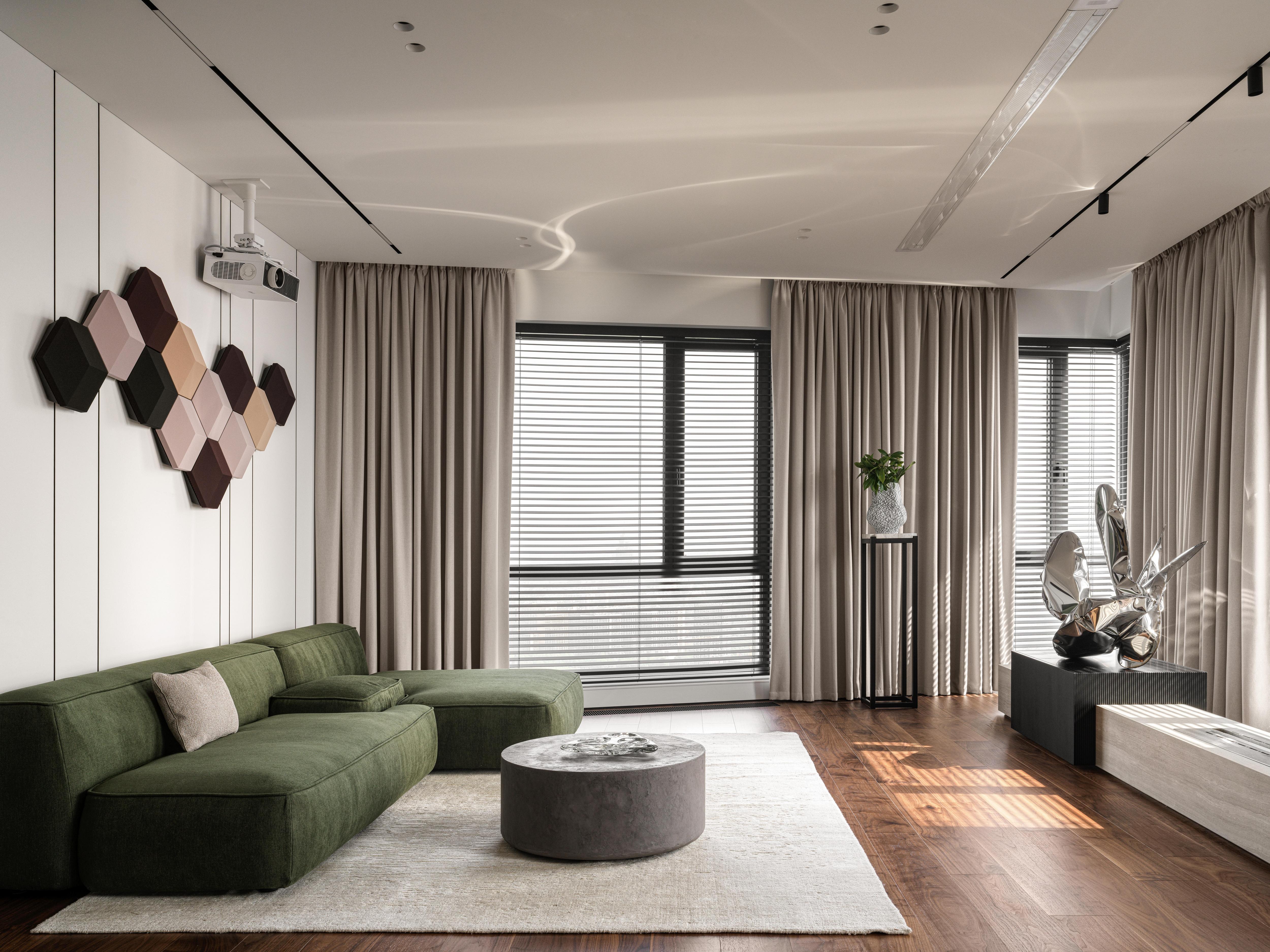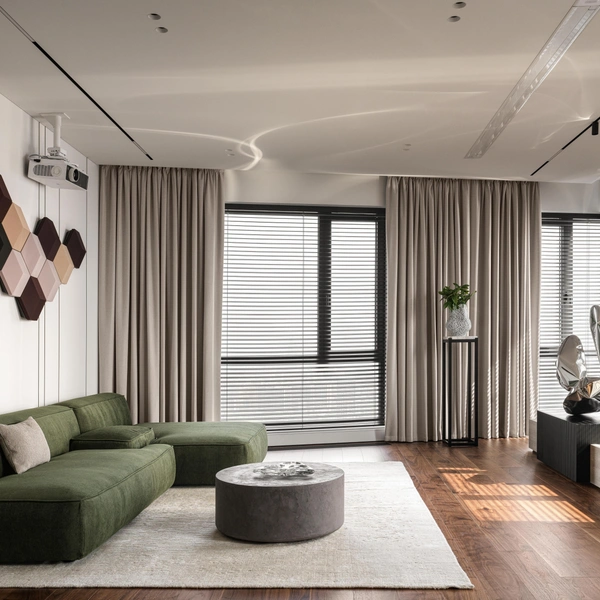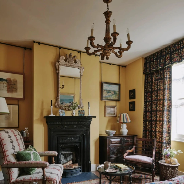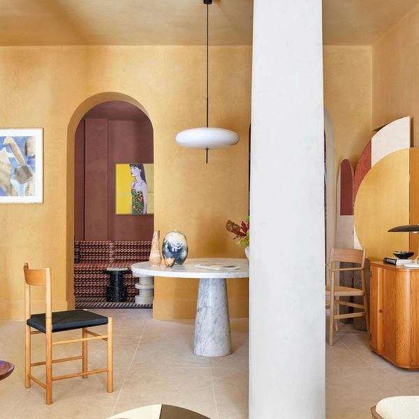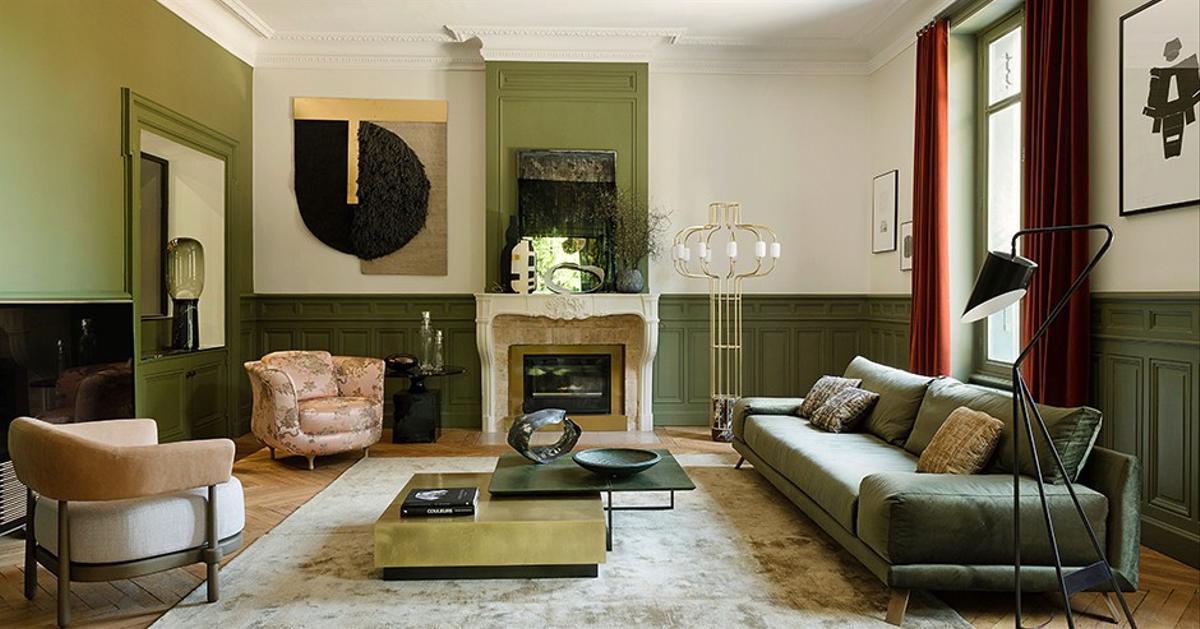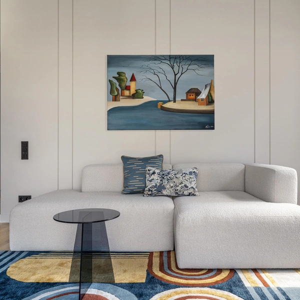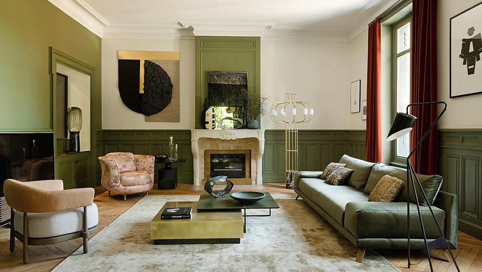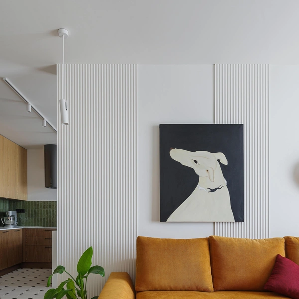 Соломенно-желтый может быть как пастельным, так и более насыщенным. Он похож на трендовый оттенок сливочного масла, и в этом смысле смотрится дорого, сдержанно, аккуратно, несмотря на то, что «соломенный» и «сливочное масло» звучат вполне себе пасторально. Но самое главное — он добавляет тепла, уюта. А это особенно ценно в тех регионах, где большую часть года серо — в таких случаях соломенно-желтый, действительно, спасает настроение. Особенно если дополнить его теплой подсветкой и искусством с более глубокой, насыщенной палитрой.