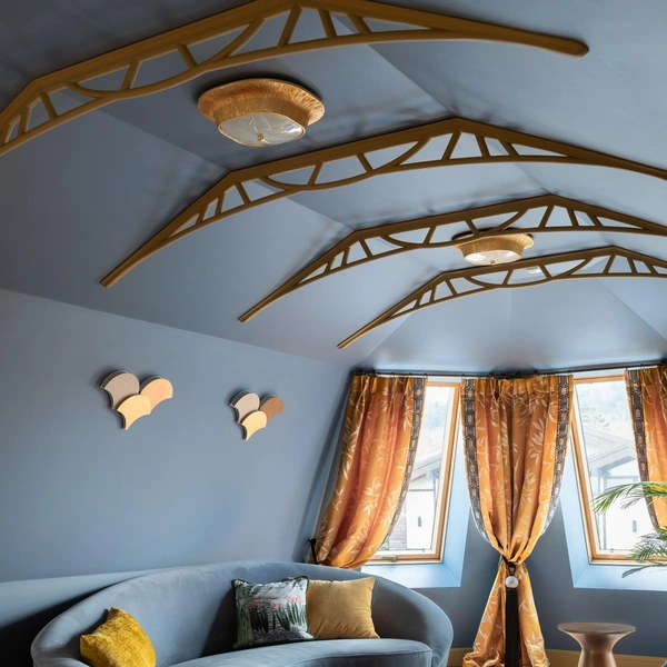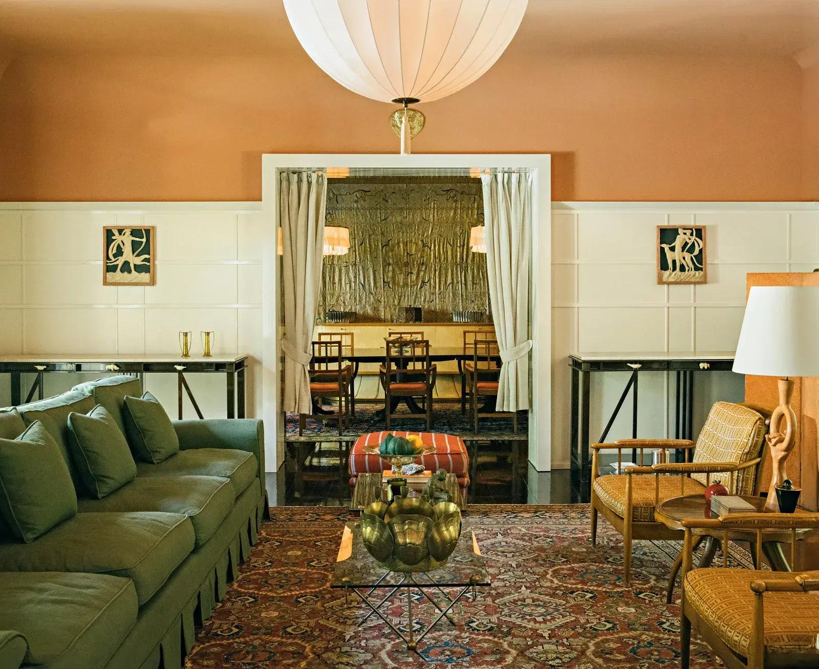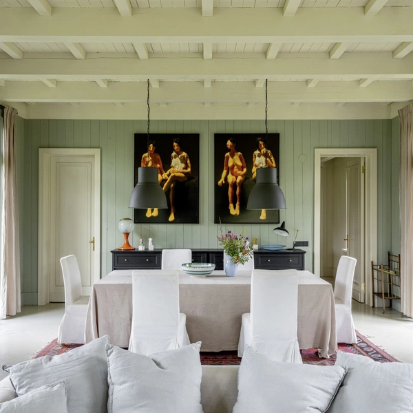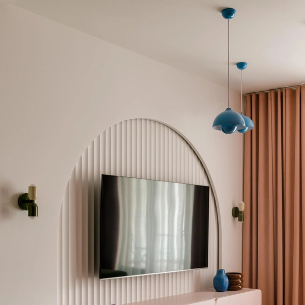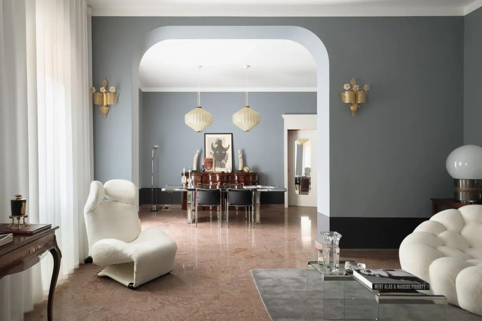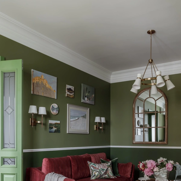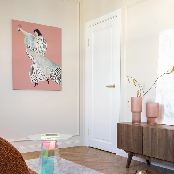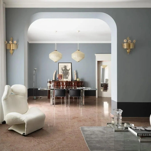 Если серо-голубой — цвет неба после теплого дождя, то пудрово-розовый — нежный рассвет или начинающийся закат. Это не такой буквальный оттенок розового, он немного сложнее, этим и прекрасен. Пудровый создает в интерьере особую атмосферу: он не такой смелый, но довольно оригинальный. Можно сказать, сдержанный барби-кор для тех, кто хочет, но не решается. Да что там барби-кор, берите выше — замок с интерьерами в стиле рококо! Пудрово-розовый все же во многом ассоциируется с атмосферой европейских салонов.