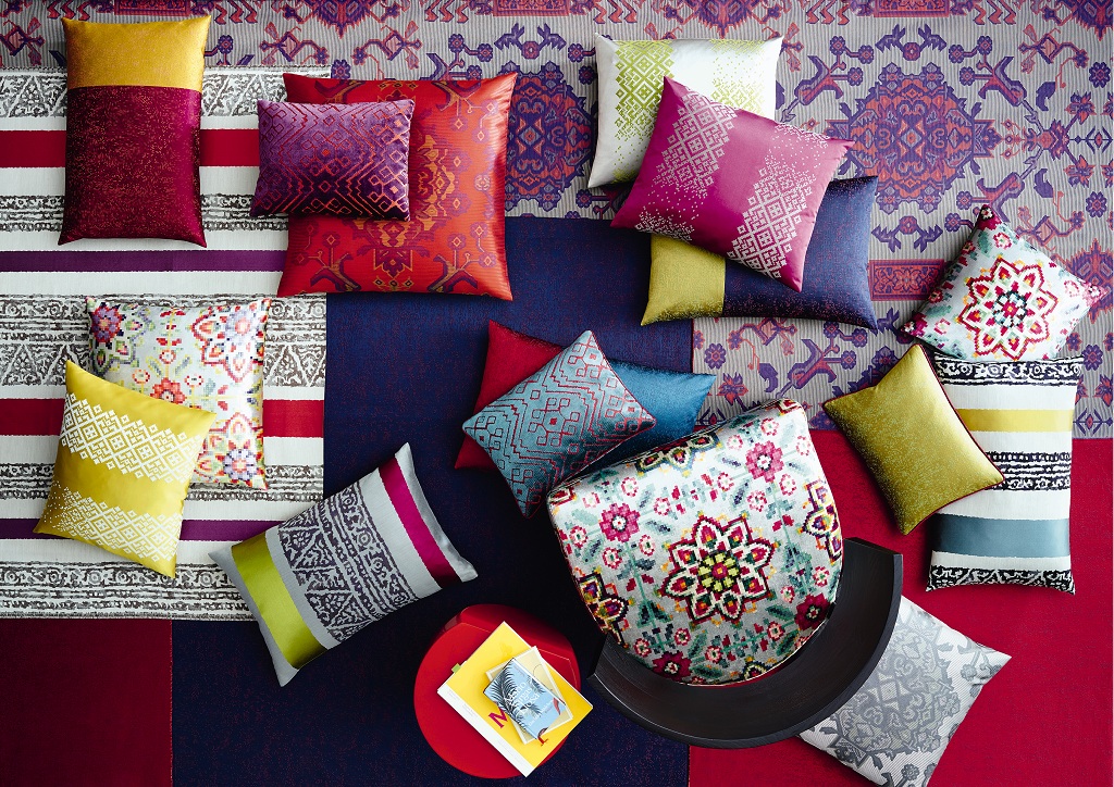 В последних коллекциях тканей преобладают яркие и глубокие краски. Чем интенсивнее цвет, тем выигрышнее смотрится ткань в интерьере! Еще большей глубины цвету придают материалы с ворсистой поверхностью, вроде бархата, или с блеском – такие, как шелк и вискоза. Узор на чехле может быть самым разным: это и растительный рисунок, и абстрактный геометрический принт. Прием, который часто используют декораторы, - комбинирование однотонных подушек глубоких цветов в оформлении изголовья кровати или дивана с чехлами в яркую полоску в той же самой гамме.