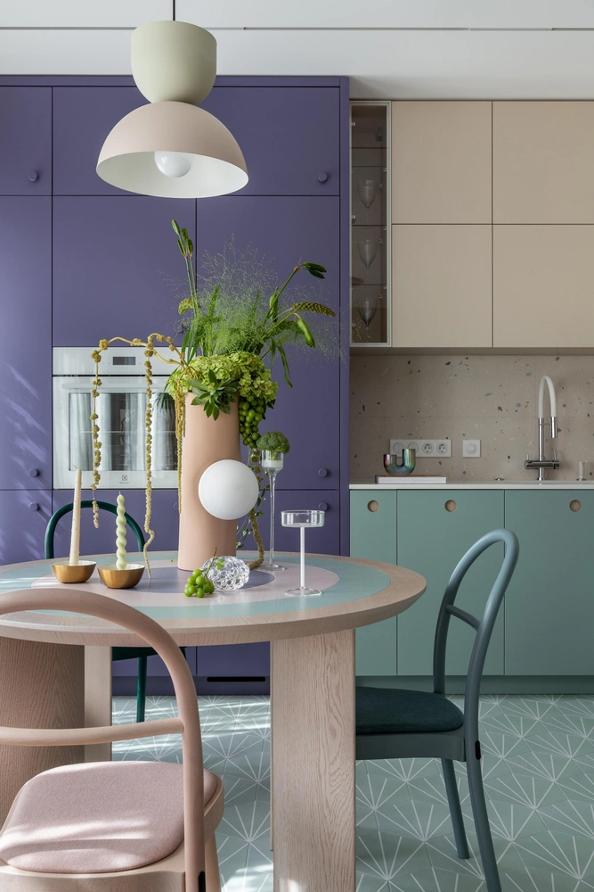 Фиолетовый хорошо сочетается со многими другими цветами, например, его часто можно увидеть рядом с розовым, нежно-зеленым или синим. За вдохновляющими примерами — в нашу подборку!