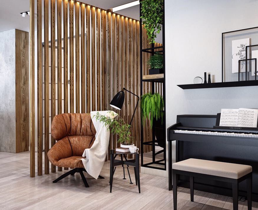 Рядом с креслом стоит разместить компактный приставной столик, на который можно положить недочитанную книгу, поставить бокал или чашку с напитком.