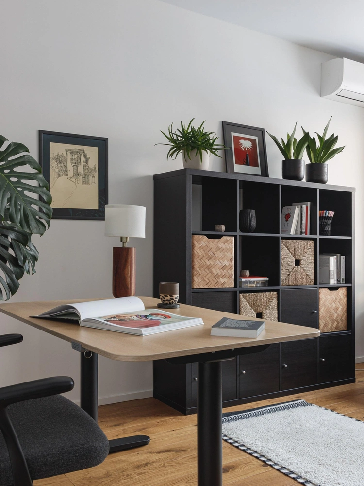 Составление мудборда, брифа или другие задачи, предполагающие множество разных форматов — фото, документы, эскизы, письма, важные контакты, — целая проблема для домашнего офиса. Решение, как уместить все и сразу и при этом иметь возможность быстро добавлять и убирать ненужные элементы, есть. Например, использовать шпалеры ИКЕА — «Барсэ» или «Аскхольмен». Прикрепляйте все необходимое прищепками или канцелярскими гвоздиками, не нанося вреда обоям и стенам.