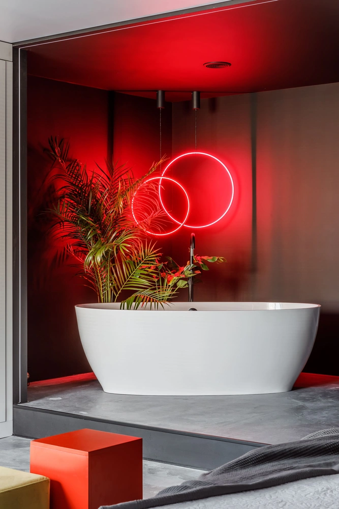 Ковер — самый простой способ освежить интерьер ванной комнаты и добавить новых красок. Постелите яркий коврик у входа, раковины, душевой или ванны. Также можно использовать несколько ковров, выполненных из разных материалов и украшенных различными принтами. И самое главное: не забудьте про противоскользящую подложку.