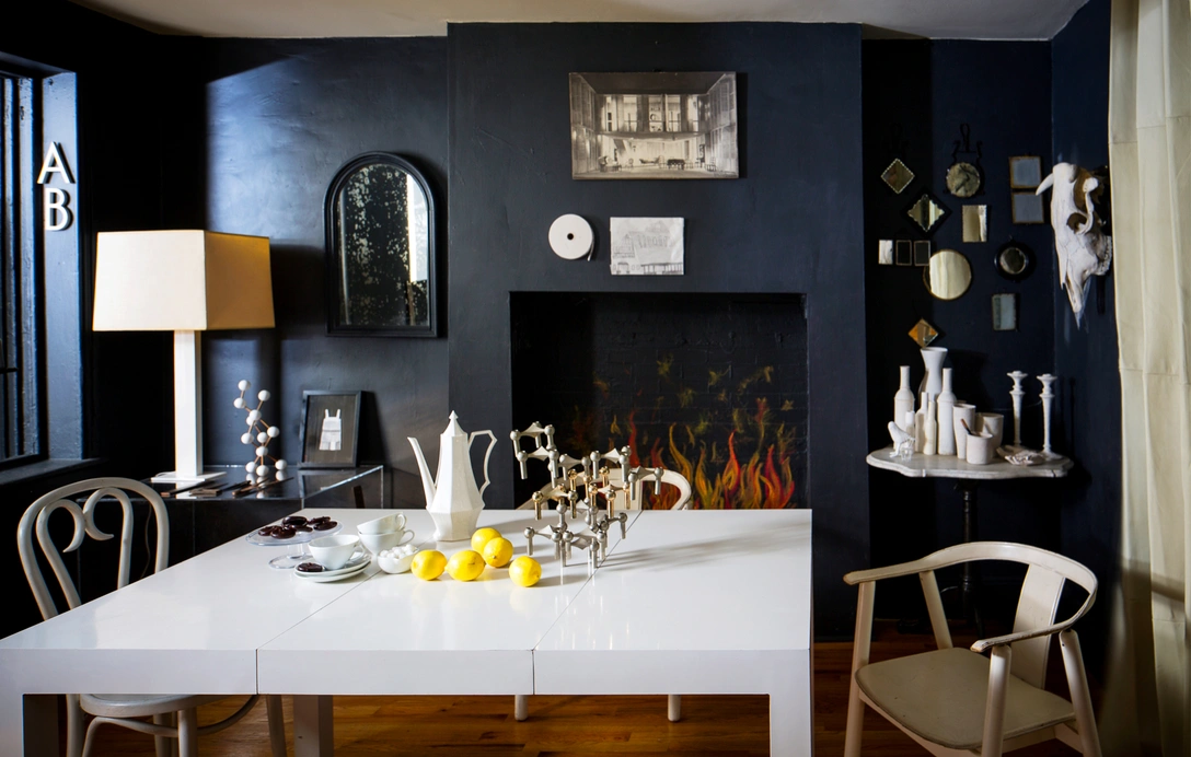 Камин — сильный визуальный центр. Вокруг него можно организовать стеллажи, над ним повесить зеркало или картину, а перед очагом создать уютную диванную зону. В современном интерьере камин зачастую начинает соперничать с телевизором. Но это не недостаток, а просто сложность.