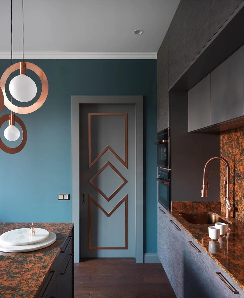 Плюс: у кварца существует огромное множество вариантов отделки, так что вы без труда подберете цвет и рисунок, который будет гармонично сочетаться с фасадами ваших кухонных шкафов. Пожалуй, единственный минус, который есть у этого материала — он поставляется в листах 1,5×3 метра, поэтому если ваша кухня по длине больше трех метров, придется стыковать разные куски, и шов будет немного виден. В этом случае стоит обратить внимание на искусственный камень, который благодаря технологии запекания стыкуется практически бесшовно.