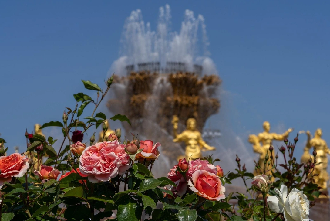 Большой цветник перед павильоном № 84 «Дом культуры» на ВДНХ не оставит равнодушным ни одного любителя роз. Сейчас там можно увидеть множество роскошных и ароматных цветов, в том числе розы сорта «Румба» с оранжево-красными цветками, собранными в большие кисти — до 20 бутонов в каждой. Здесь также представлен сорт «Чиппендейл» с крупными розовыми махровыми цветами и ароматом тропических фруктов.