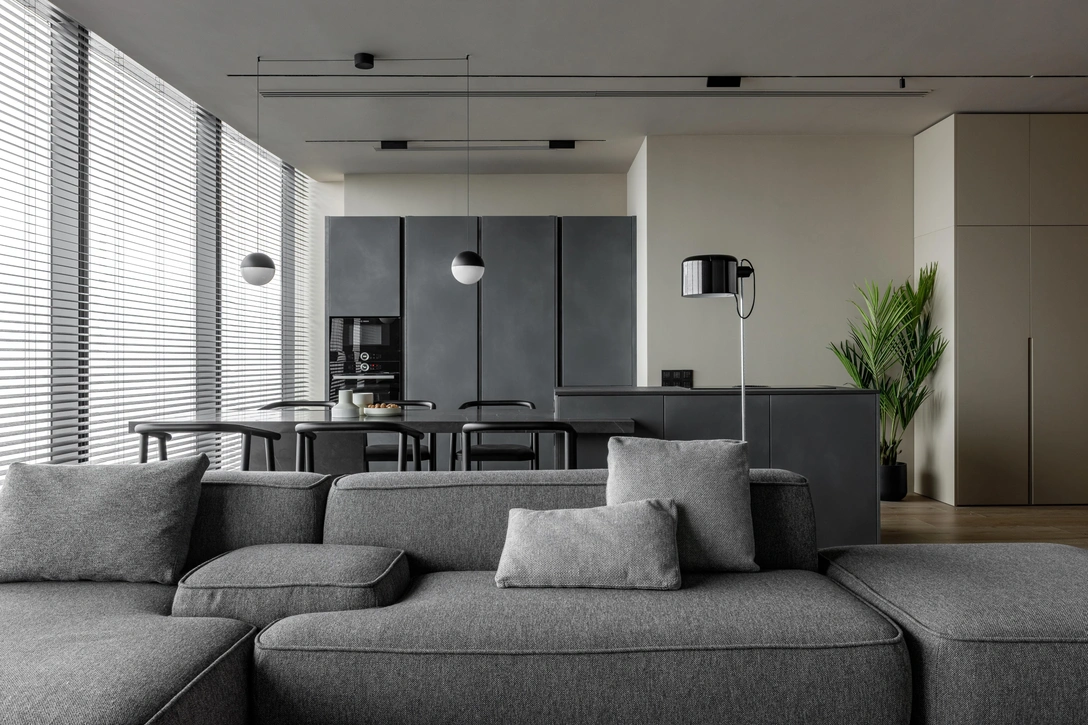 Для минимализма характерны простые формы, монохромная палитра и визуальная чистота. Однако это не значит, что пространство должно быть абсолютно «стерильным». Ваза на столе, пальма в кадке, стопка книг на комоде или плед, небрежно брошенный на диван, дадут понять, что в доме есть жизнь, и создадут более гостеприимную обстановку.