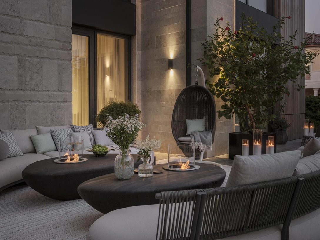 «В работе над проектом проносятся десятки, сотни идей, но именно то, что удается реализовать — по-настоящему интересно. Решения приходили слой за слоем: основой послужила круглая композиция уличных диванов от бренда Atmosphera. А затем — столы. В процессе их поиска я обратился за помощью к Андрею Измайлову (Woodzen Art), в каталоге их работ я увидел камни-лавки и предложил трансформировать их в столы с каминами. Команда Андрея — настолько увлеченные люди, что согласились изготовить эти столы для меня, и это было огромной удачей для нас. Они и стали центром композиции всей террасы».
