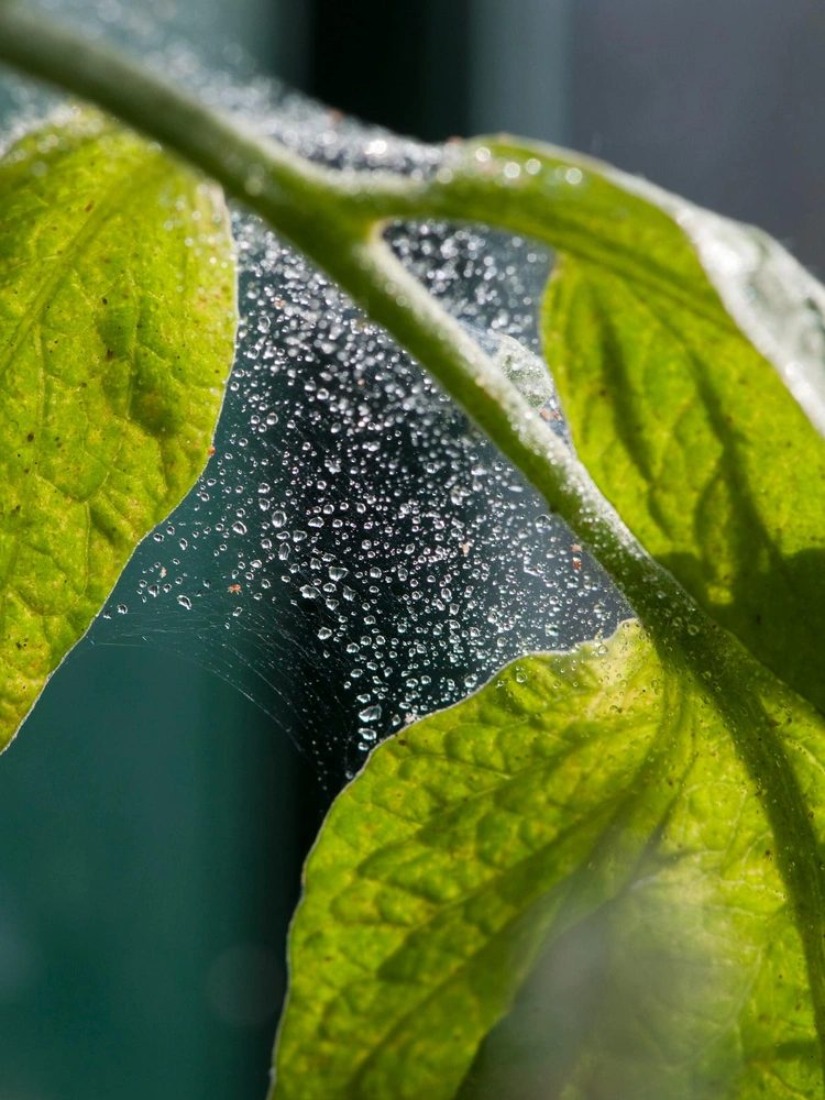 Паутинный клещ безопасен для человека и животных, но вредит растениям. Он высасывает из листьев и хвои питательные вещества и влагу, буквально иссушая их изнутри. Заметить появление паразита непросто: паутинный клещ очень мал, меньше миллиметра в длину. Он поселяется на нижней поверхности листа или хвои и едва различим. Обычно клеща распознают по маленьким паутинкам, которыми он покрывает растение, размножаясь на нем. Но проблема в том, что паутинки появляются только на стадии сильнейшего заражения — растение к этому моменту уже под угрозой гибели.