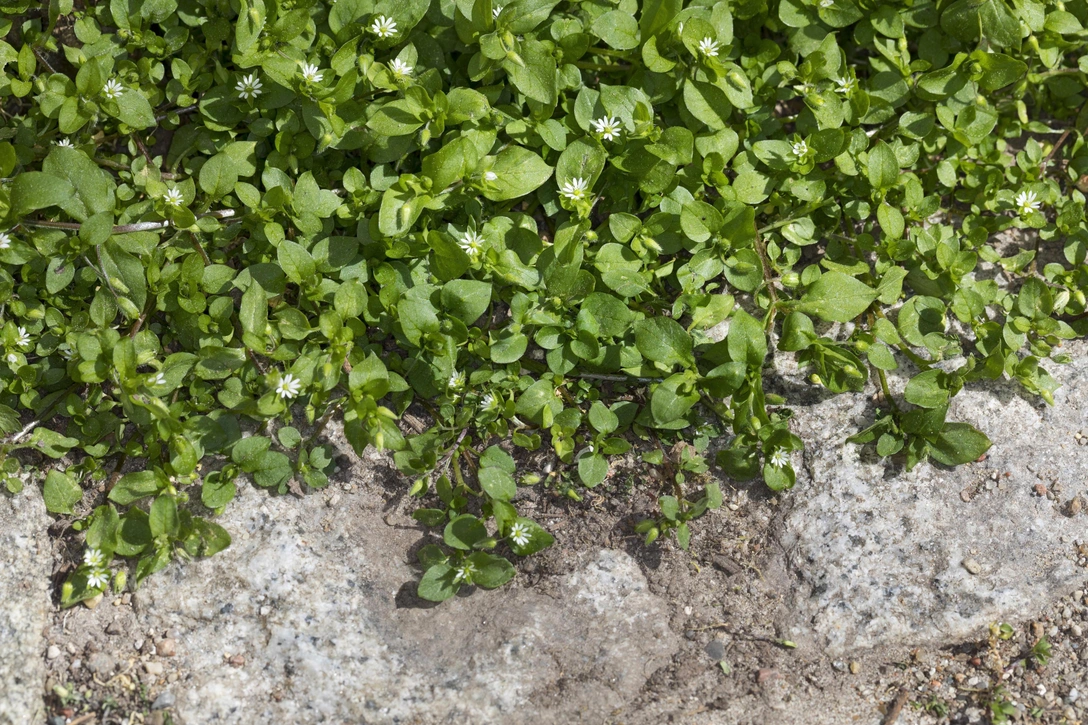Звездчатку среднюю называют мокрицей, сердечной травой, грыжником, канареечной травой. Ее яйцевидные заостренные листья остаются влажными даже в сухую погоду благодаря способности растения впитывать влагу, а цветет она маленькими белыми цветочками, похожими на звездочки.