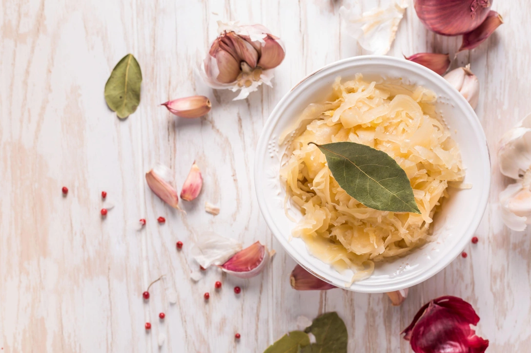 Квашеная капуста низкокалорийна и богата белком и пищевыми волокнами. Он содержит витамины А, С, К, а также различные витамины группы В, такие как В6 и фолиевая кислота. Это также хороший источник минералов, таких как железо, марганец, медь, натрий, калий, магнийи кальций. Ферментация капусты способствует росту полезных пробиотиков, которые помогают улучшить здоровье кишечника.