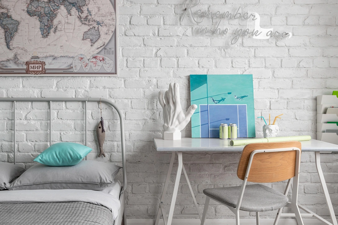Красить кирпич лучше матовой акриловой краской. Наносить краску можно также валиком в несколько слоев. Перед покраской важно защитить полы, плинтусы и розетки от попадания брызг. Если вы хотите показать пористую фактуру кирпича, то разбавьте краску чуть сильнее, и сразу после нанесения вытирайте излишки безворсовой салфеткой.