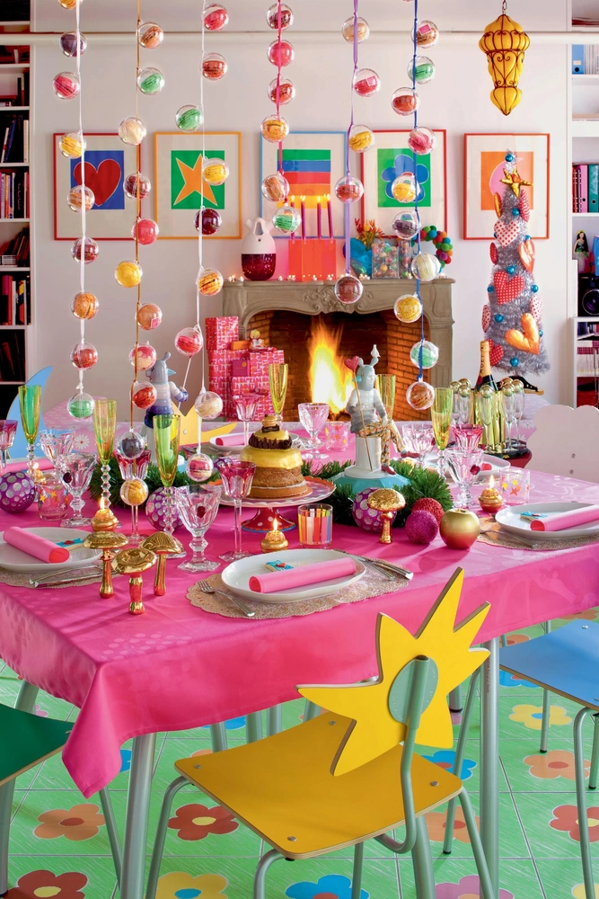 Искусственная елка украшена текстильными сердечками из коллекции аксессуаров Agatha Ruiz de la Prada. На каминной полке — ваза Nuclear Pomegranatе, дизайн Хайме Айона для Baccarat, Maison Baccarat.