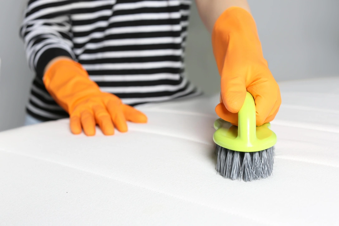 Решая, как вывести пятно с матраса, учитывайте состав наполнителя. Из моделей с кокосовой койрой можно выбивать грязь, положив на поверхность влажную ткань. Поролоновые и полиуретановые изделия сильно мочить нельзя: их обрабатывают слегка влажной губкой или тряпкой, а по возможности очищают сухими составами. Если внутри матраса прячутся пружины, тоже не спешите щедро лить на него жидкость, чтобы на металлических элементах не появилась ржавчина.