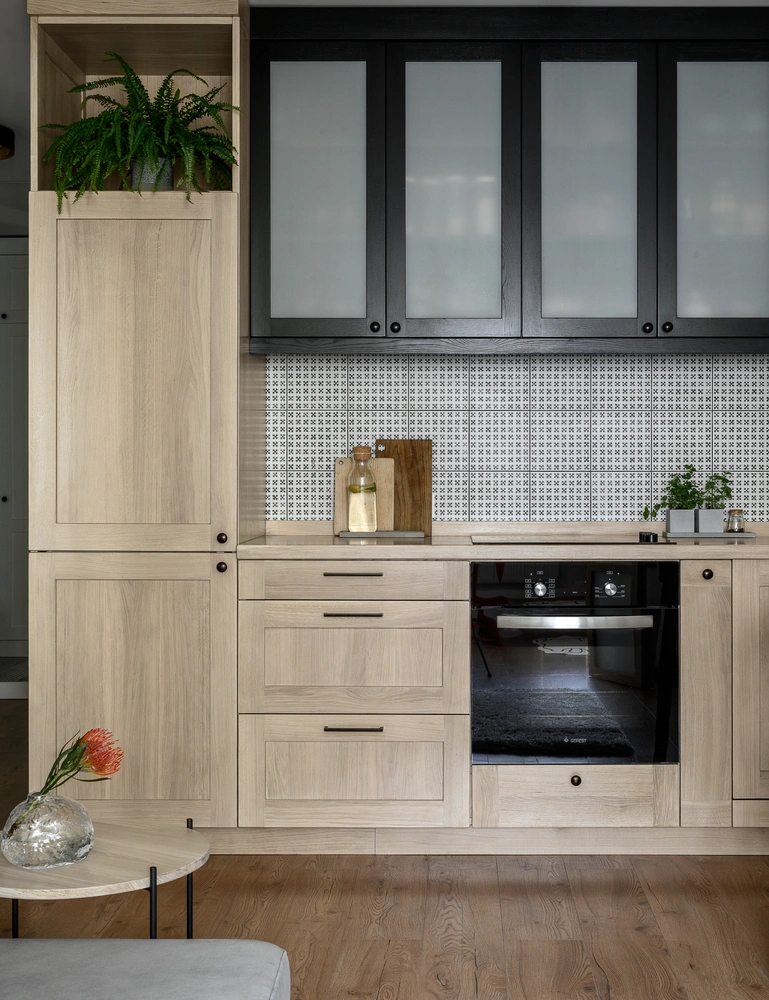 При выборе материалов стоит обратить внимание на дерево и камень — они долговечны, добавляют уют в пространство и не выходят из моды. Но с ними стоит быть осторожными: натуральные материалы чувствительны к перепадам температур и механическим воздействиям. Хорошая альтернатива — отделка из шпона или искусственного камня.