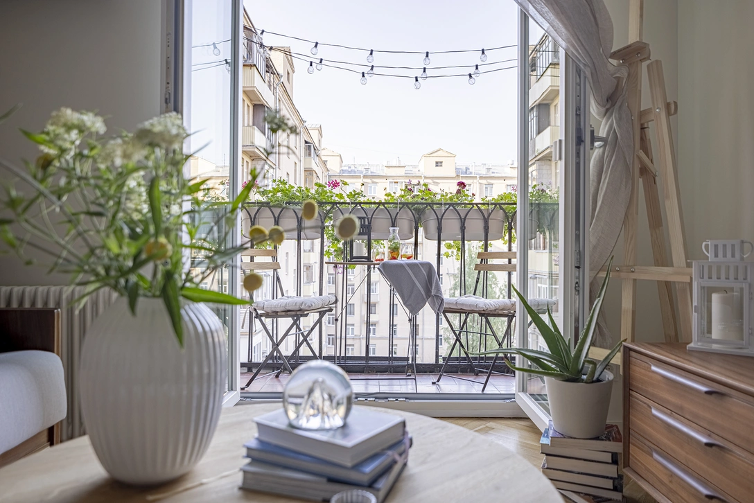 На балконе можно обустроить лаунж зону, бар, комнату отдыха, мини-кабинет или небольшую цветущую оранжерею. Также ориентируйтесь на то, в какой комнате размещен выход на балкон. Если это спальня, то можно сделать там небольшую гардеробную. Если гостиная, то лучше превратить балкон дополнительную зону отдыха.