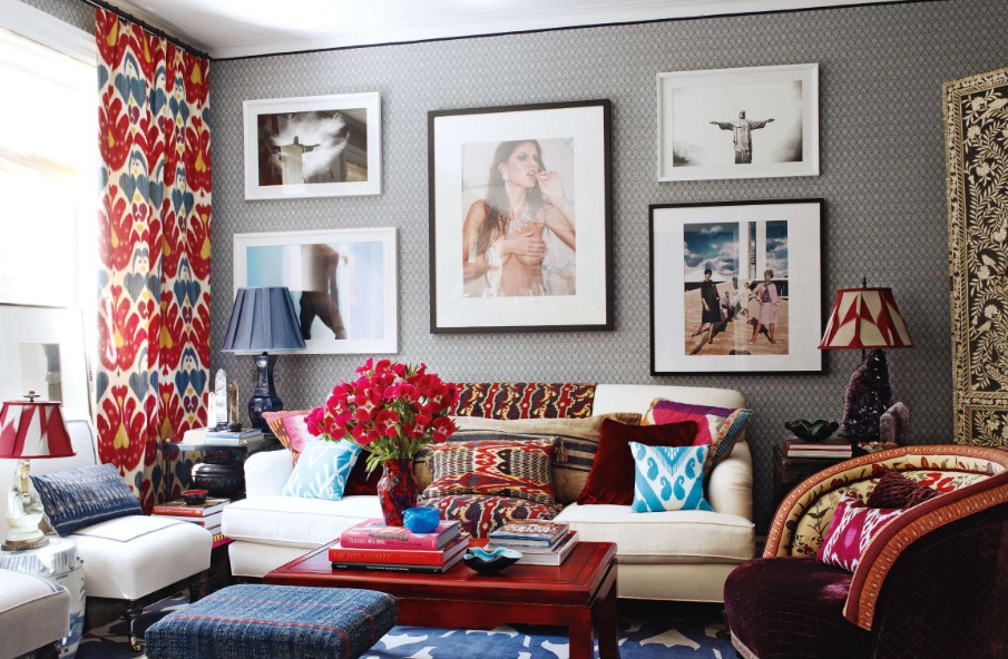 Чтобы не сильно уходить в этнику, ткани с узором «икат» стоит использовать в качестве акцентов.