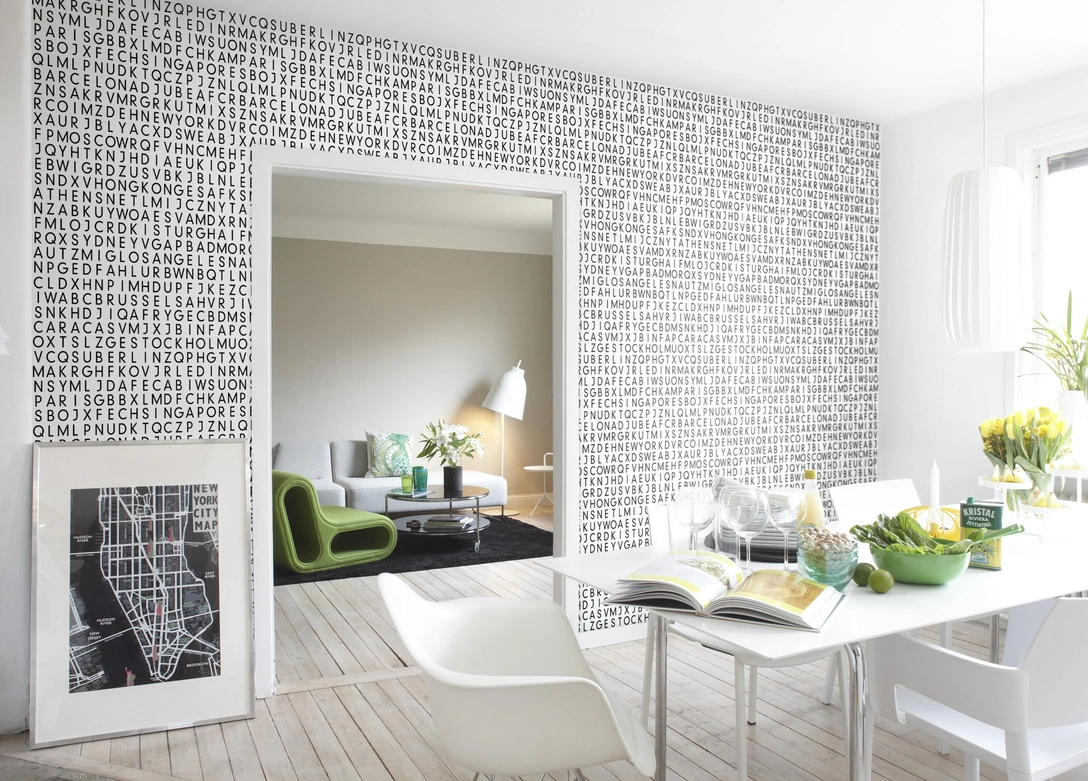 Для детской, на мой взгляд, лучше всего подойдут мягкие текстильные буквы. Ребенок наверняка захочет их потрогать. В спальне будут уместны романтичные неоновые надписи. Если вы тяготеете к печатному слову, оклейте одну из стен газетами или листами любимой книги (только убедитесь, что у вас остался дубликат, ведь со стены читать неудобно), предварительно вымочив их в специальном растворе. Он придаст эффект старины.