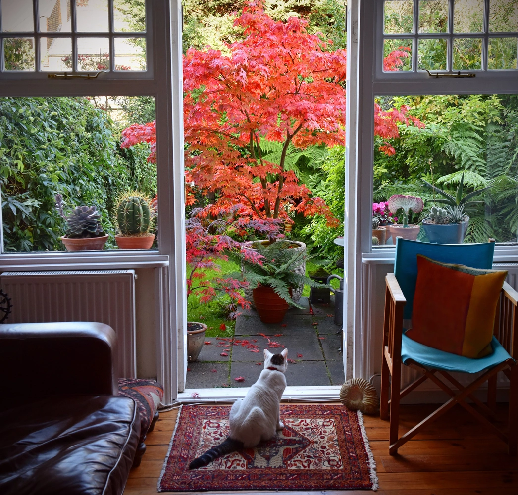 Например, пергола — декоративная беседка-навес с вьющимися растениями — образует естественный переход от дома к саду, а терраса из дерева станет идеальным местом для отдыха. Поставьте на нее скамью с пледом и подушками, чтобы привнести ощущение комфорта. Осенние листья, падая, будут создавать вокруг этих элементов естественный декор.