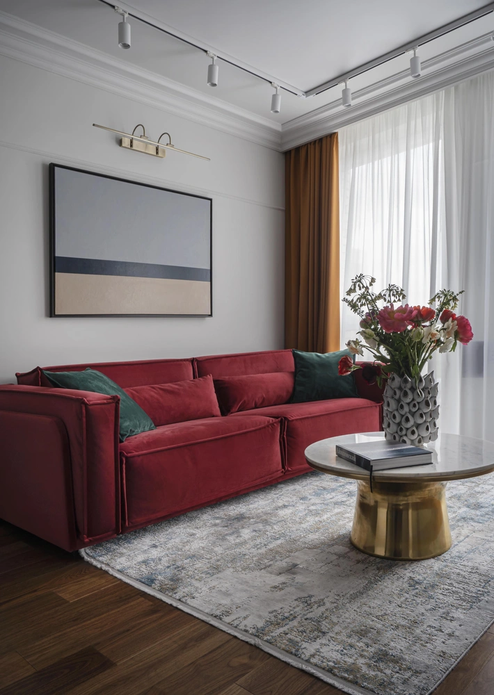 Ковер часто подбирают в дополнение к какому-то элементу мебели. К примеру, если вы хотите разместить ковер у дивана, то ковер должен быть больше дивана. Так он будет гораздо лучше смотреться в интерьере, расширяя пространство и делая всю комнату элегантнее и дороже.