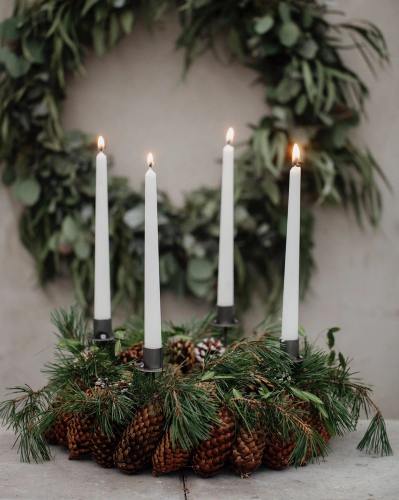 Традиционный рождественский подсвечник имеет форму квадрата и предназначается для четырех свечей, которые зажигают за четыре недели до Рождества — по одной каждое воскресенье. Сегодня в магазинах появляются альтернативы в виде керамических чаш, которые могут стать стильным украшением дома в любое время года. Их можно дополнить природным декором — хвойными веточками или еловыми шишками — для создания зимней атмосферы.