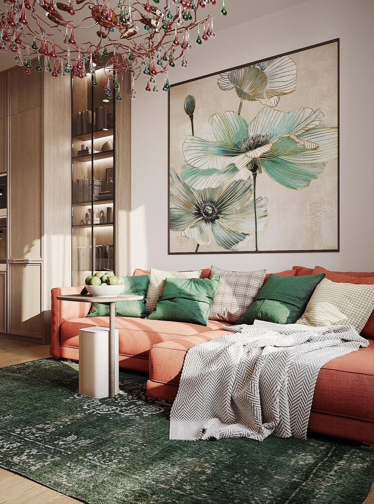 Бежевые интерьеры с нами уже не первое десятилетие — и такое однообразие стало надоедать. Сейчас в интерьер модно вводить более сложные цвета и необычные акценты: ярко-синие, оранжевые или изумрудные подушки, картины или текстиль могут быстро и заметно преобразить комнату. Яркие акценты подойдут куда угодно — неважно, бежевый у вас интерьер или темный.