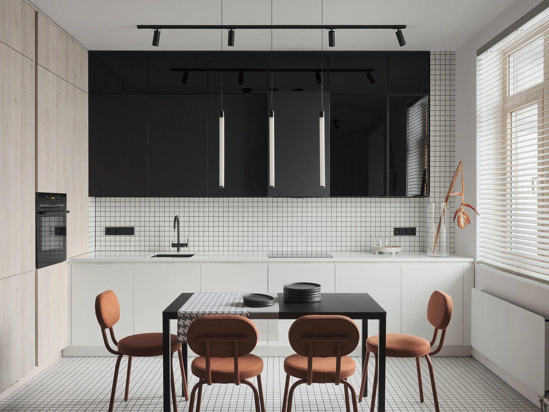 Подумайте, что должен привнести фартук в облик вашей кухни. «Проанализируйте комнату и определите, хотите ли вы создать иллюзию большей ширины или большей высоты. От этого будет зависеть рисунок и укладка плитки. Из этого правила, конечно, всегда бывают исключения, но обычно плитку кладут одинаково по всей кухне: