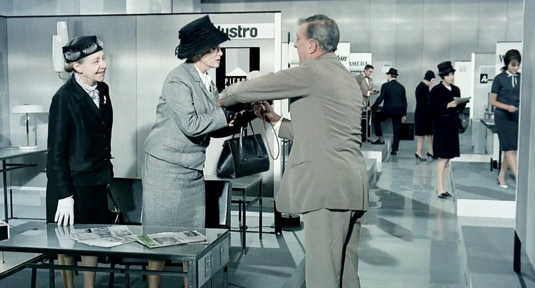 Франко-итальянская комедия Жака Тати «Время развлечений» в свое время произвела настоящий фурор, ведь ее стилистика кардинально отличалась от царившей в те годы в кинематографе. 1967 год — это хиппи, дети цветов, мир, радость, галлюциногены. А тут выходит совершенно другой, серый фильм. Для съемок был выстроен целый город под названием Тативиль, призванный изображать современный Париж, и в частности новый футуристический район Дефанс.