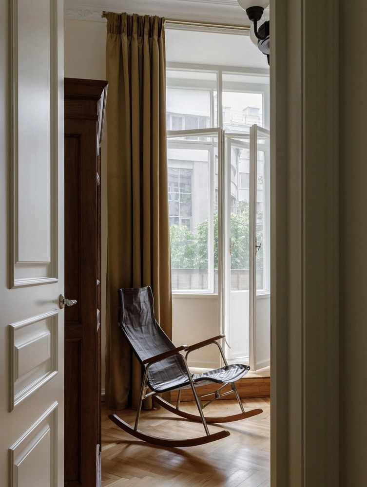 Квартира в Москве. Проект Жени Ждановой. Кабинет, фрагмент. Кресло-качалка из той самой квартиры, которую хозяйка квартиры помнит с детства.