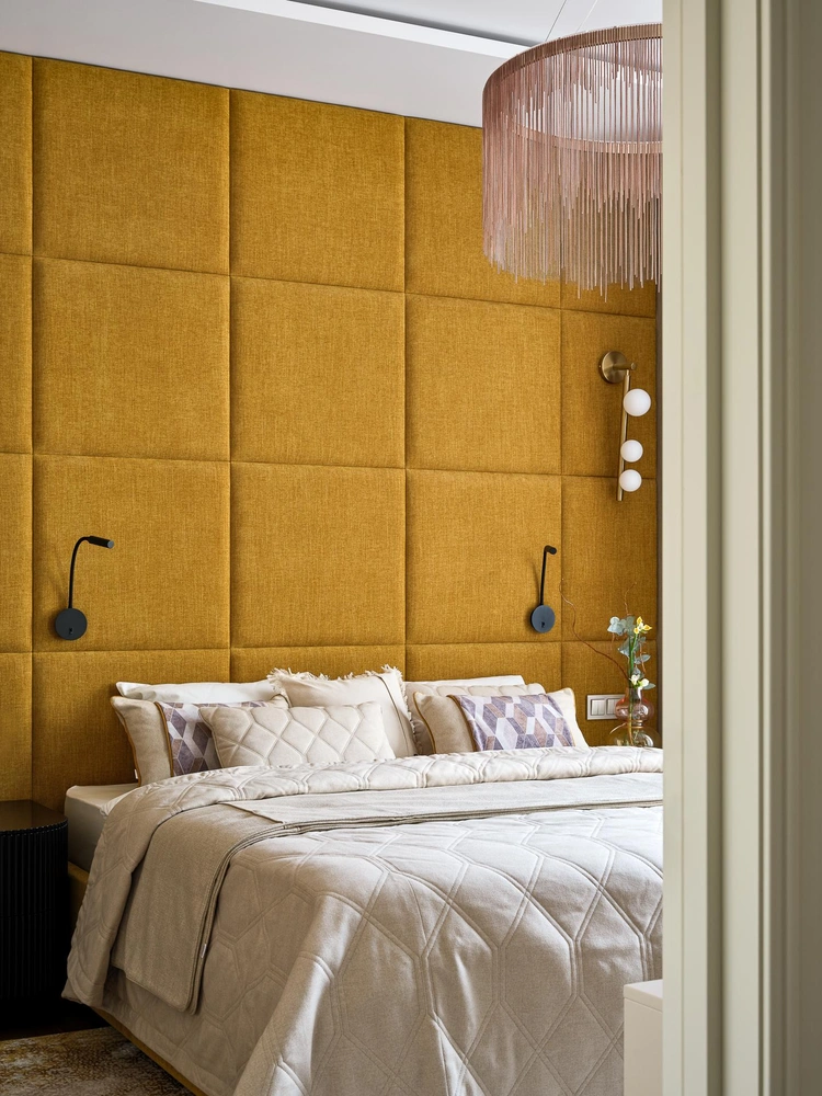 Изголовье кровати, обитое тканью — из велюра, бархата или эко-кожи — стильное и оригинальное решение, которое способно преобразить визуальной облик всей комнаты. Это яркий акцент, который придает спальне уют и делает пространство камерным, «обволакивающим». Кроме того, оно носит и практичную роль: защищает обои на стенах от царапин и загрязнений и обеспечивает удобную опору и комфорт при чтении или просмотров фильмов на кровати.