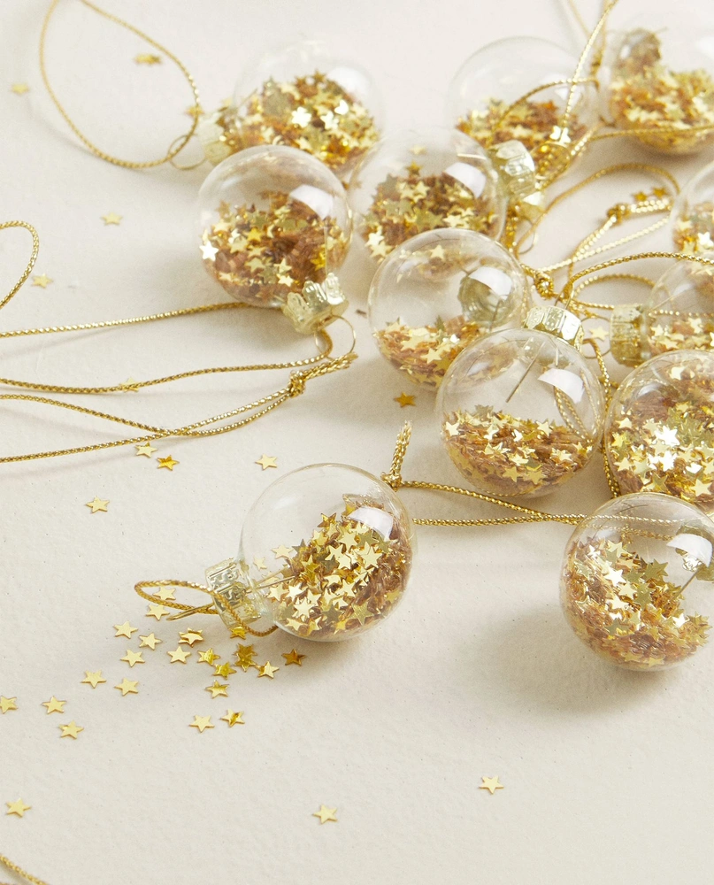 Комплект из двух блестящих новогодних украшений в форме звезды и месяца, H&M Home, www2.hm.com/ru_ru/