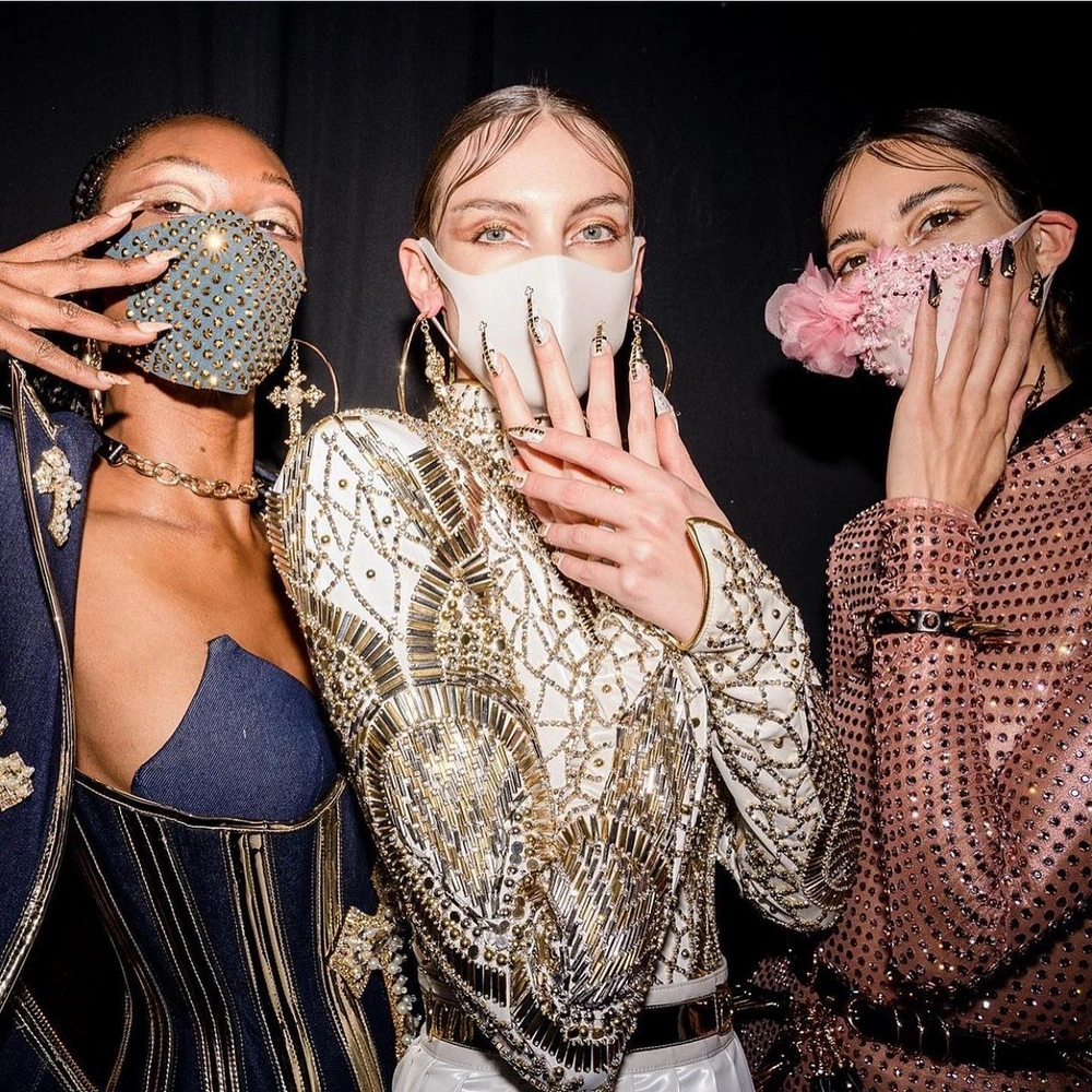 Модель Kozue Akimoto в маске Marine Serre, Paris Fashion Week 2019.