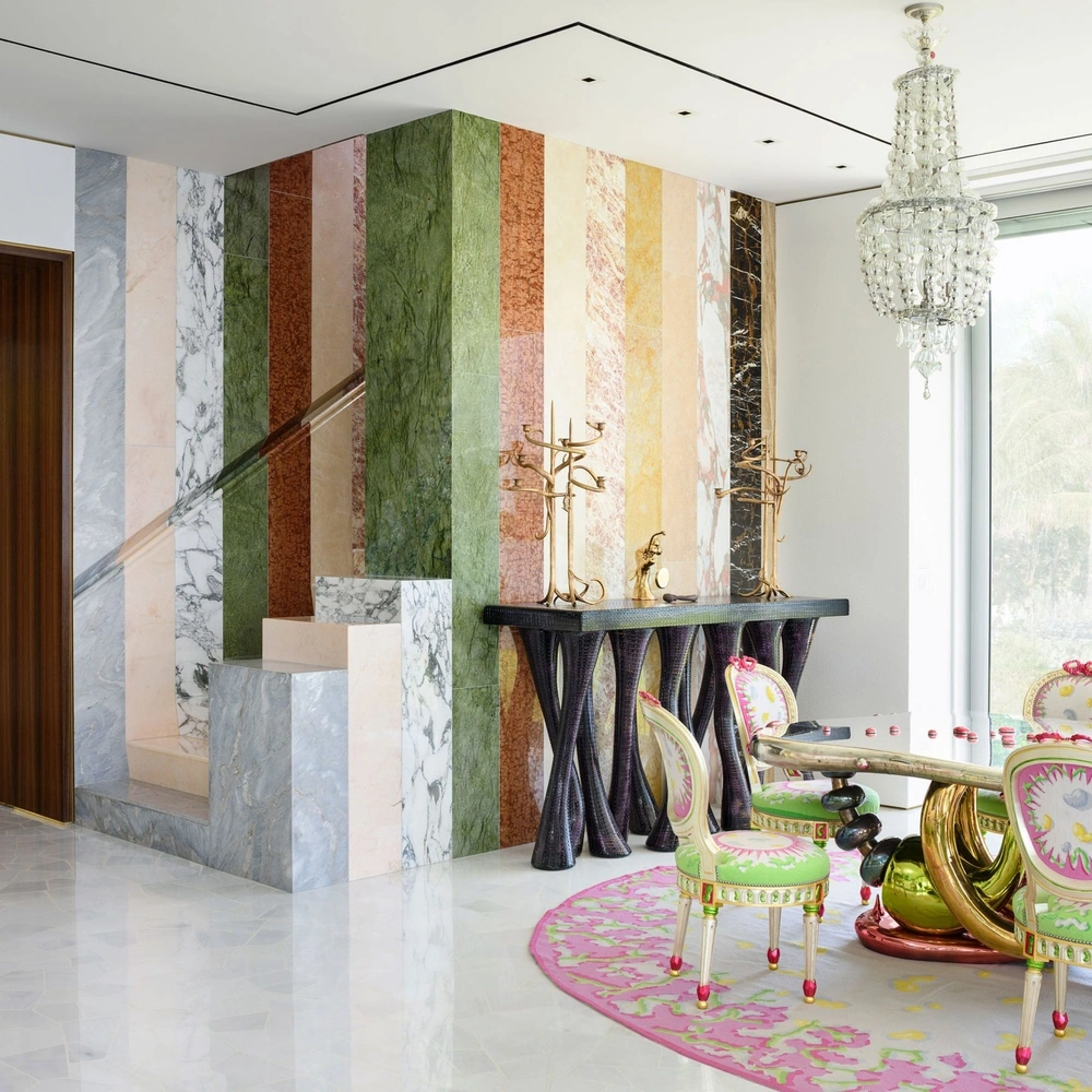 Мы привыкли к белоснежному или черному мрамору, которым украшены величественные постройки прошлого — от Тадж-Махала в Агре до дворцов Версаля и Санкт-Петербурга. Неоклассицизм XIX века тоже любил белоснежные сорта — самые известные скульптуры, колонны и мраморный декор той поры изготовлены именно из такого камня. И хотя последние несколько лет в интерьерах безоговорочно правил сорт «Калакатта» — белый с графичными, живописными серыми прожилками — сейчас дизайнеры все чаще используют в своих проектах разноцветный мрамор. Причем жажда красок и более выразительных узоров проявляется не только в оформлении кухни или ванных комнат, где мы привыкли видеть этот материал, но и практически во всех частях дома.