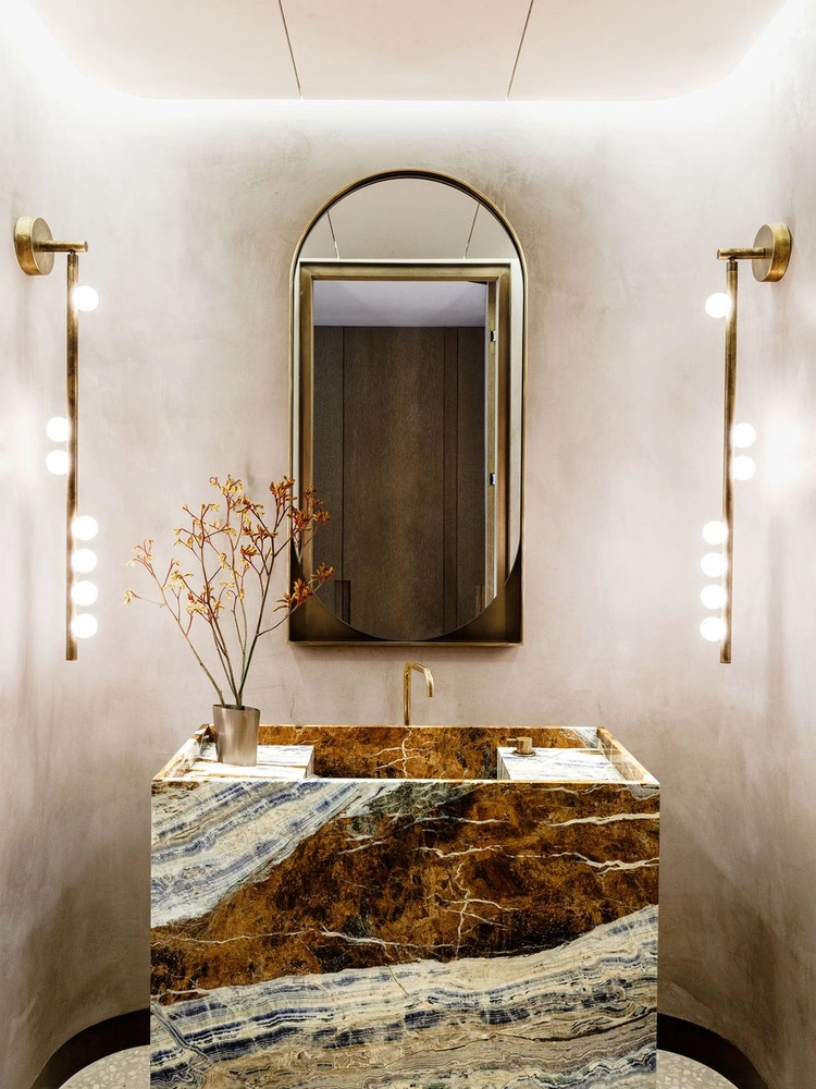 Мода на мрамор возвращается. И слава богу! Мы считаем, что натуральный камень — лучшее решение для ванных комнат: он практичный, износостойкий, долговечный и при этом красивый. Правда, 2023 год вносит кое-какие коррективы и в этот тренд: светлые сорта вроде любимой дизайнерами Калаккаты уступают место более ярким, цветным сортам с необычным рисунком — чем живописнее, тем лучше!