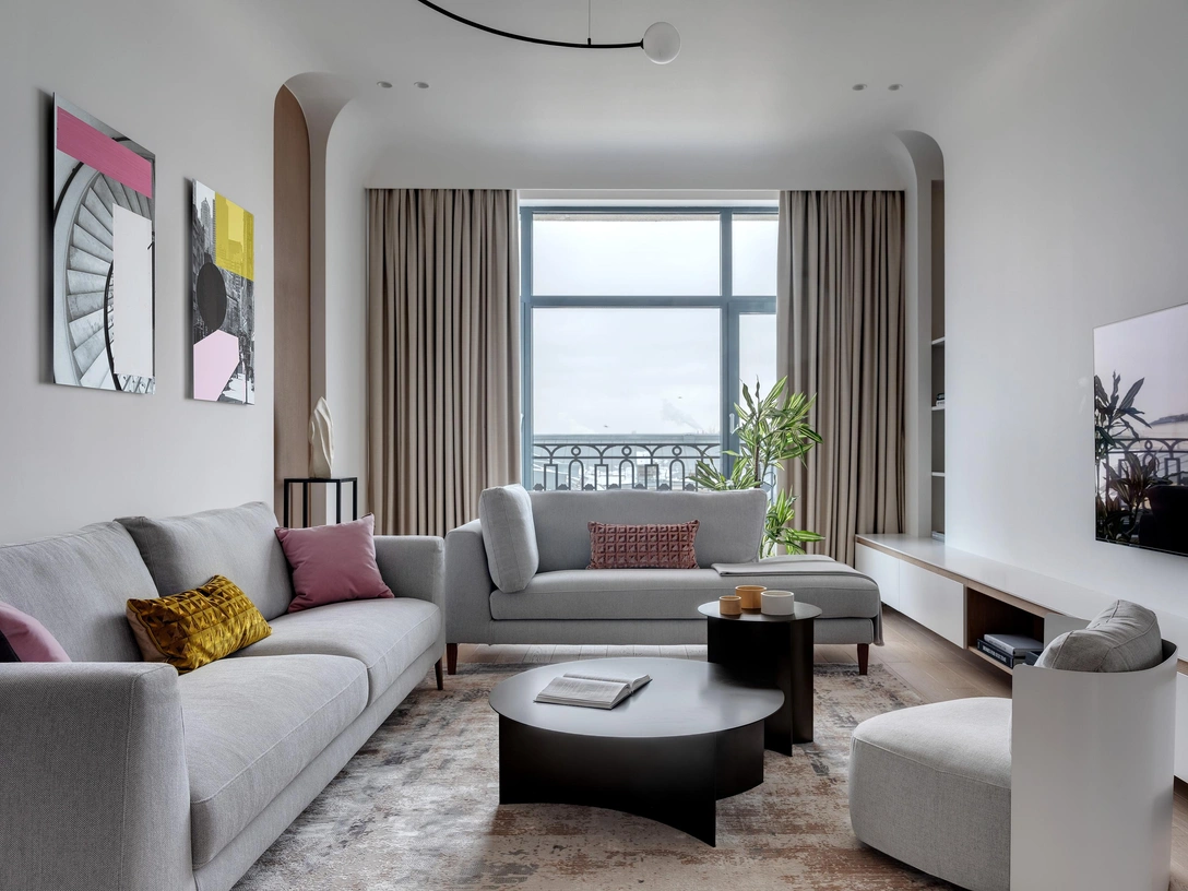 Заказчик — владелец IT-компании, переехавший в современный ЖК, чтобы сменить обстановку. Свою прежнюю квартиру в «сталинке» он очень любил — в ней была особая атмосфера, поэтому полностью терять связь с прошлым ему не хотелось — так что мы решили добавить элементы этой эстетики в новом прочтении. В результате у нас получился немногословный, довольно минималистичный, но не лишенный интересных деталей интерьер — главную роль в нем играют столярные изделия и искусство (картины, фотографии и скульптуры).