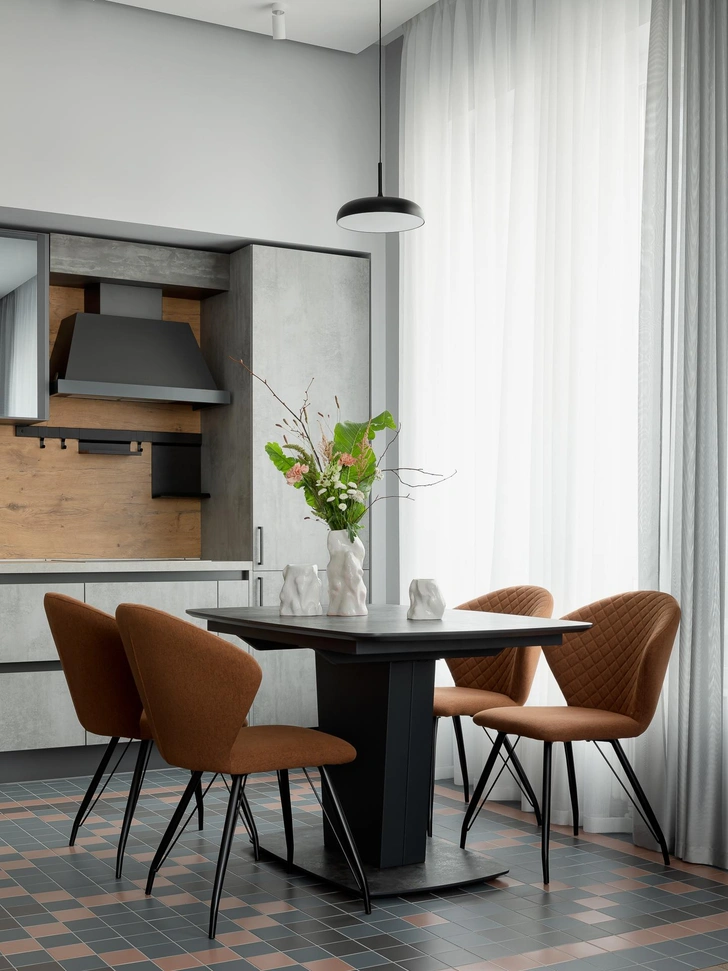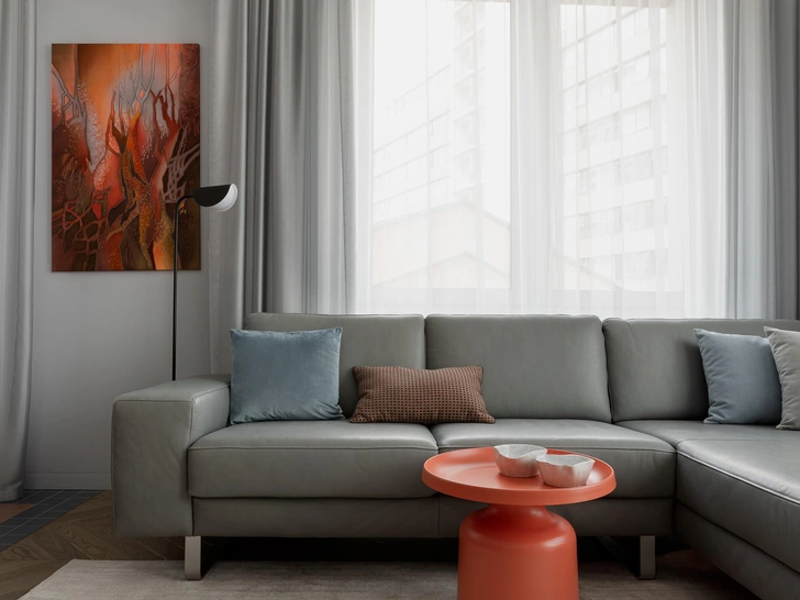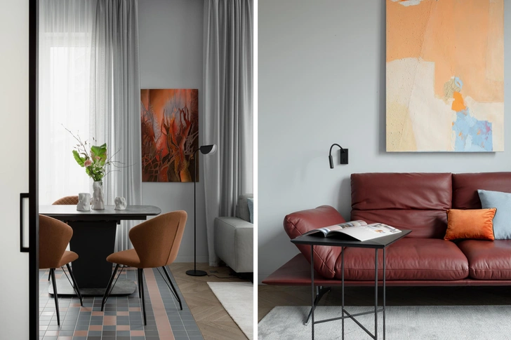 «Интерьер вобрал в себя их смелость, креативность и внутреннюю яркость. Мы сохранили это живое настроение, структурировав и усилив его минималистичной архитектурой. Цветовая палитра строится на благородных серых оттенках, создающих спокойный фон. На их нейтральной основе раскрываются теплые терракотовые и бордовые акценты, они привносят в интерьер тепло и глубину. Их уравновешивают легкие голубые включения — свежие, воздушные, создающие мягкий контраст и гармонию».