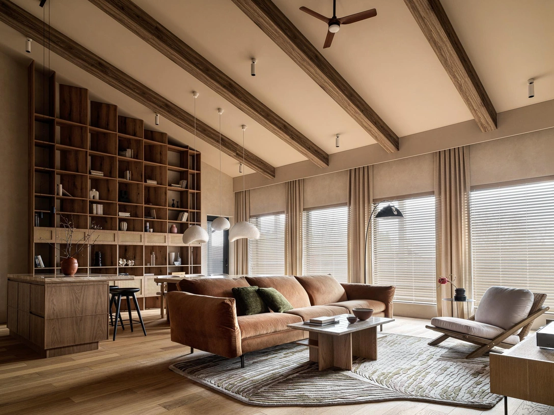 Спокойствие, естественность и мягкие формы — вот главные пожелания клиентов. Мы опирались на эстетику стиля джапанди — сочетание японской сдержанности и скандинавского уюта. Это выражается в мягких линиях, натуральных материалах и продуманной простоте. Важную роль в интерьере играет теплая нейтральная палитра: молочные, древесные, светло-серые и песочные оттенки. Пространство наполнено воздухом, выглядит очень объемно — без ярких контрастов, но с глубиной, фактурой и мягкой геометрией.