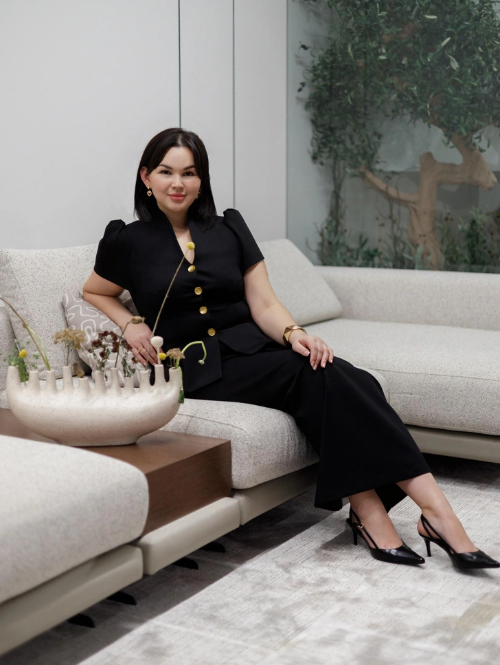Ая Елюбаева и флорариум с оливковым деревом