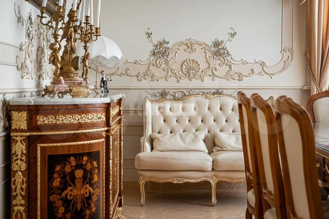 Пятикомнатная квартира стоимостью 535,7 млн рублей находится в клубном доме в Дмитровском переулке, в 5 минутах ходьбы от Большого театра и 15 минутах от Кремля. Планировка довольно современная и включает объединенную гостиную-столовую, отдельную кухню, три спальни, каждая из которых оснащена собственной ванной комнатой и гардеробной, кабинет, гостевой санузел и дополнительные гардеробные комнаты.
