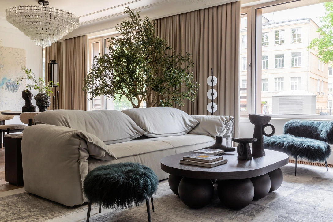 В этом проекте практически не было простых решений — каждая деталь требовала точности и глубокого погружения в архитектуру пространства. Тем не менее главной задачей было привнести в интерьер ощущение уюта, создать дом, куда хочется возвращаться, где приятно проводить время и просто быть. Именно эта чувственная составляющая стала главным ориентиром в работе.