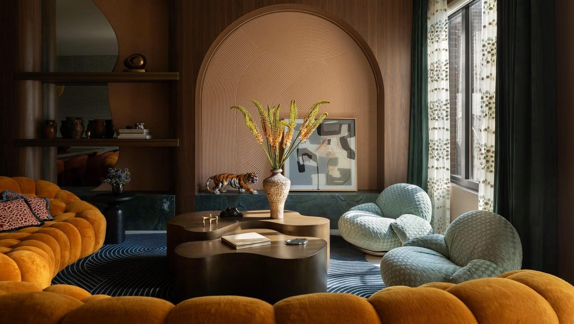 Дизайнер Рэйчел Бенитес из студии Kuchar вспоминает, что главным вызовом было наделить каждый элемент цветом, рисунком и фактурой, но при этом не перегрузить пространство. Потребовалось немало времени, чтобы найти баланс. В итоге интерьер получился живым, но не хаотичным — скульптурная мебель, трехмерные покрытия стен и слои отделки сложились в единую картину.