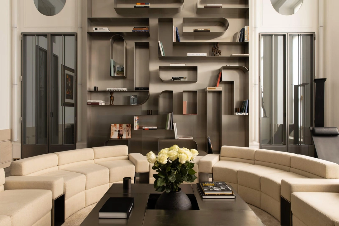 Новый владелец провел реставрацию, но не стал менять стиль. Интерьеры остались такими, какими их задумал сам Лагерфельд: минимум цвета, много хрома и зеркал, четкие геометрические формы. Дизайн отсылает к эстетике 1960-х и 1970-х годов — космической эре, футуризму, чистоте линий.